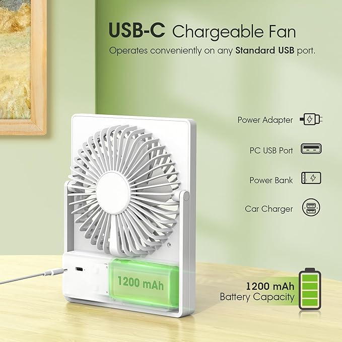 Crafted with high-quality materials, this mini desk fan is built to last. Its stylish design blends effortlessly with modern interiors, adding both function and elegance to your space.